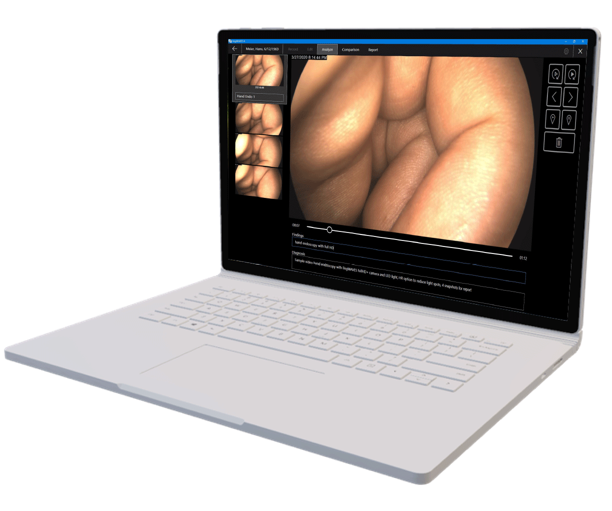 - After completing recording/snapping you can go through the video or snapped pictures and edit/add snapshots. Add comments to each snap and complement with your findings and diagnosis.